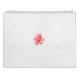Utformningen har en grafisk återgivning av en blomma med flera blad. Pallerna visas med röda, manusliknande linjer, ge intrycket av en skiss eller en abstrakt. I mitten finns det ett cirkulärt mönster i skuggor av rosa och lila som tyder på blomans kärna. Bakgrunden är vit, vilket står i kontrast till det levande röda i petalerna.