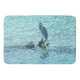 Ett minimalistiskt foto av en Heron som genomsöktes på ett träd som inte helt har sjunkit under vatten. Yta i vatten störs av vinden och krusarna skapar en blå texturerad bakgrund. Upphovsrätt ©2018 Kimberly J Tilley.