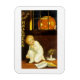 Vintage Halloween-hälsningskortbild som visar ett barn som "spookeras" av en jack o'lantern i fönstret.