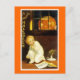 Vintage Halloween-hälsningskortbild som visar ett barn som "spookeras" av en jack o'lantern i fönstret.