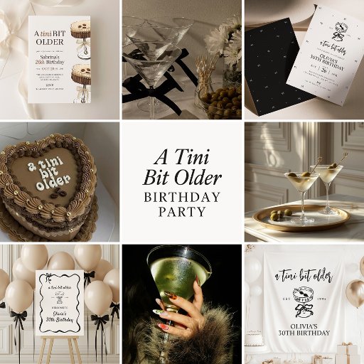 Skål för elegans och stil med denna moderna "A Tini Bit Older"-martini: födelsedagsinbjudan! Med en handritad espresso martini-illustration med en coquette-båge och en vit fluga gräns blandar den här designen perfekt ihop tidslassofistikering med en djärv roligt-vridning. Den eleganta bruna typografin och den minimalistiska layouten gör det till ett idealiskt val att fira milstolpar som 21:a, 30:e, 40:e eller vilken ålder som helst värd att rosta. Anpassa den med din party-information och få ett glas att skaka till ett annat fantastisk år med den här födelsedagsinbjudan!
