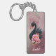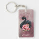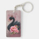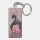 A touch of rose and swan's glow. This enchanting design depicts an elegant black swan, immediately eye-catching with its smooth, dark plumage and bright orange beak. A delicate floral arrangement perches atop its head, emphasizing its regal grace. Delicate pink blossoms, presumably peonies, are artfully grouped around the swan's body, lending the image a romantic and elegant touch. The background consists of a gentle gradient in shades of pink, immersing the scene in a dreamy, almost magical atmosphere. The interplay of the jet-black feathers, the vibrant flowers, and the soft gradient creates a harmonious overall image full of grace and love.
