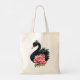 A touch of rose and swan's glow. This enchanting design depicts an elegant black swan, immediately eye-catching with its smooth, dark plumage and bright orange beak. A delicate floral arrangement perches atop its head, emphasizing its regal grace. Delicate pink blossoms, presumably peonies, are artfully grouped around the swan's body, lending the image a romantic and elegant touch. The background consists of a gentle gradient in shades of pink, immersing the scene in a dreamy, almost magical atmosphere. The interplay of the jet-black feathers, the vibrant flowers, and the soft gradient creates a harmonious overall image full of grace and love.