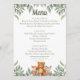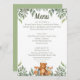 Woodland Animals Eucalyptus Greenery Lämnar Baby Shower Menu. Den här högkvalitativa designen är enkel att anpassa för att matcha din babydusch färg, stilar och tema.
