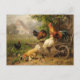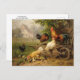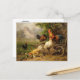 Ett vykort med målningen A watchful Öga (Ein Wachsames Auge) (1916), av den tyske konstnären Carl Jutz (1838-1916). Han var känd för sina målningar av landskap, stillastående liv och naturstudier. En gårdsplats med tuppar och kycklingar vid ladan.