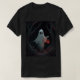 The overall color palette is dark and moody, dominated by blacks, reds, and whites. The illustration employs a detailed, semi-realistic style with a focus on texture and depth, creating a haunting and immersive scene. The ghost's lantern is the only bright source of light, highlighting the eerie, mystical environment.