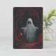 A white ghost holding a red lantern with red leave inbjudningar