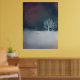 A Winter Night White Snö Träd Poster