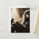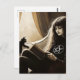A witch reads with her black kitten vykort