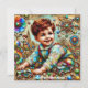 En söt liten pojke som firade Aaron födelsedag. Hälsning på kortet är "Grattis på födelsedagen Aaron". På baksidan av kortet finns en liten version av framsidan bild och det finns gott om utrymme för skriva av ett meddelande. Tillverkad med hjälp av AI Bing.