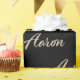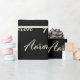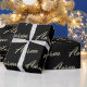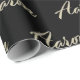 Sehr schönes edles personalisiertes Geschenkpapier im whitegold Lettering Look auf schwarz für Aaron.