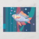 Postkort med undervattensdjur konst, abborre fisk med röda fenor och svans simmar i sjögräs.
