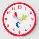 Designen har bokstäverna "ABC" i primärfärger och stor, schablonfont. Klockans siffror visas i en röd, lättläst stil. 12, 3, 6 och 9 är något större än resten av siffrorna. Hela designen är inringad i en röd kant. Finns även i blått.