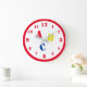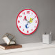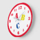 Designen har bokstäverna "ABC" i primärfärger och stor, schablonfont. Klockans siffror visas i en röd, lättläst text. 12, 3, 6 och 9 är något större än resten av siffrorna. Hela designen är inringad i en röd kant. Finns även i blått.
