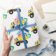 Att lära sig alfabetet med lastbilar är alltid roligt. En söt illustration av ett leksak lastbil som bär på färgstarka ABC-alfabet. Ideal Julklapp, födelsedagspresent, daghemsdeka, barnrumskonst, hemdekanter eller back to school.