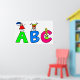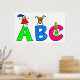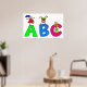 Cute tecknad illustrerar lycklig och olika små pojkar och flickor som klättrar över gigantiskt brev av alfabetet som utmärker ABC i ord. Bild finns tillgänglig på olika presenter och produkter. Poster. Skriver ut.