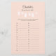 Få party igång med den här roligten, ABC Baby Shower Game! Det minimalistiska spelkortet har en charmerande klammerlinje med barnkläder på en ljuskänslig persikobakgrund, som skapar ett speciellt minne för de föräldrar som ska vara. Det här spelet är en del av samlingen med minimalistiskt Clothesline Baby Shower. skapar det enkelt att skapa en vackert samordnad händelse. ©Susanne Sacher - Sunny Mind 🌞