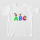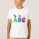 Gullig tecknadillustration av lyckliga och olika pyser och flickor som klättrar över jätte- brev av alfabetet som stavar ut ord ABC. Avbilda tillgängligt på olika gåvor och produkter. T-tröja. Hoodies.