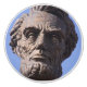 En keramisk knopp med ett foto av Abe Lincoln.