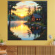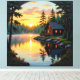 Eine friedliche Blockhütte steht am stillen Seeufer, umgeben von majestätischen Tannen. Die untergehende Sonne taucht den Himmel in warme Farben, während sich das Licht im Wasser spiegelt. Ein Ort der Stille, der Geborgenheit und des Rückzugs aus der Welt – fast wie aus einem Märchen.