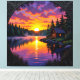 Eine friedliche Blockhütte steht am stillen Seeufer, umgeben von majestätischen Tannen. Die untergehende Sonne taucht den Himmel in warme Farben, während sich das Licht im Wasser spiegelt. Ein Ort der Stille, der Geborgenheit und des Rückzugs aus der Welt – fast wie aus einem Märchen.
