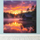 Eine friedliche Blockhütte steht am stillen Seeufer, umgeben von majestätischen Tannen. Die untergehende Sonne taucht den Himmel in warme Farben, während sich das Licht im Wasser spiegelt. Ein Ort der Stille, der Geborgenheit und des Rückzugs aus der Welt – fast wie aus einem Märchen.