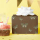 Ochre, svarta, vita och grönt prickar skapar vågliknande mönster och accentuerar prickarna i denna svala fjäril, inspirerad av den traditionella prickkonsten i Australiens aboriginpopulation.
