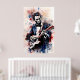 Vattentärsmålning av Abraham Lincoln sönderdelad på gitarren.