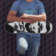 Skateboard har en svart och vit popkonst stil-bild av USA:s president Abraham Lincoln.