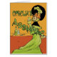 En något tröttsam tittar kvinna på 1990-talet i stil har ett glas grönt Absinthe.
