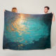Abstract Aqua Waves with Golden Sunlight Fleecefilt