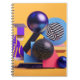 This modern abstract artwork is a striking exploration of form, contrast, and playful balance. Sculptural geometric shapes stack and intersect in a carefully composed arrangement, blending spheres, circles, rectangles, and blocks into a visually confident design. Bold colors—golden yellow, deep blue, vibrant purple, coral pink, and black—create strong contrast, while patterned surfaces add texture and rhythm to the composition.