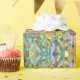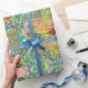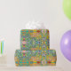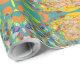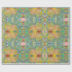 This is a repeat pattern with a retro impressionistic or Indian look design. Lots of cool colors with lots of teal and green with bright accents.