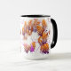 Abstract artwork depicting the melancholy of autumn with ocher leaves typical of autumn and abstract elements in colors with notes of color in violet and pink remembering the past spring.