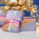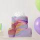 The image features an abstract composition of flowing, translucent ribbons in a variety of colors. The ribbons curve and intertwine, creating a sense of movement and depth. Colors include shades of blue, purple, pink, orange, and yellow, blending softly into each other. The background is a light, neutral tone, which allows the colors of the ribbons to stand out.