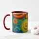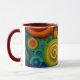 This abstract artwork is a celebration of color, rhythm, and hypnotic movement. Layered spiral circles unfold across the composition, each built from intricate textures that draw the eye inward and outward at the same time. Rich tones of gold, amber, teal, blue, green, and deep violet interlock seamlessly, creating a dynamic visual flow that feels energetic yet harmonious.