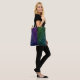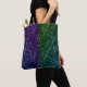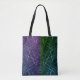 Embrace a bold, dual-tone look with this striking "Grid Split" tote bag featuring a vertical split design—deep royal purple on one side and forest emerald green on the other—overlaid with an intricate web of luminous white geometric lines. A futuristic statement in your street-wear accessories collection.