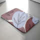 This design features organic, watercolor-style shapes in warm dusty rose (terracotta) and soft sage green, overlaid with delicate charcoal line art illustrations of various leaves and branches. The aesthetic is minimal, contemporary, and sophisticated, ideal for a refined lifestyle.