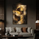 A fusion of geometry and nature. This abstract art, with its black roses and golden tones, adds a touch of mystery and vintage elegance to any environment. A unique and sophisticated piece.