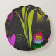 Cheerful and colorful floral pattern with abstract and botanical elements on horizontal striped background. Dark grey color.