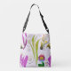 Cheerful and colorful floral pattern with abstract and botanical elements on vertical striped background. Light pink color.