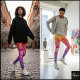 Abstract Folk Art Rainbow Gradient Quilt Leggings