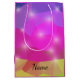 A vibrant low-poly abstract design featuring sharp geometric triangles in bright neon pink, purple, and gold. Sparkling light flares add a magical, glowing touch to this futuristic digital crystal mosaic.