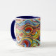 This is a Habatour Creations coffee mug, adorned with an authentic modern abstract geometric digital pattern design with wavy lines