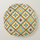 Abstract geometric pattern with diamond shapes in pastel colors. Each contains a star-like motif in teal, orange, or brown. Retro and symmetrical design.