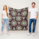 Abstract geometric pattern with layered pentagons and triangles in beige and teal on a dark brown background, creating a retro, symmetrical feel.