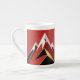 Modern Abstract Mountain Range Design Bone China Coffee mug featuring, a Red mountain range with black, gold and white accented peaks on a red background.
