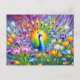 Abstract Peacock with Crocuses in Oil Paint Vykort