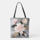 Abstract pink and white flowers on a gray, mixed media background illustrate the concept of wabi-sabi, the beauty of impermanence and imperfection. Perfect for home, office, or school, carry this beautiful tote bag anywhere!