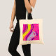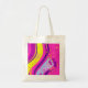 The swirling pink, yellow, and purple abstract pattern creates an energetic, modern look that turns a simple everyday tote into a playful statement piece.